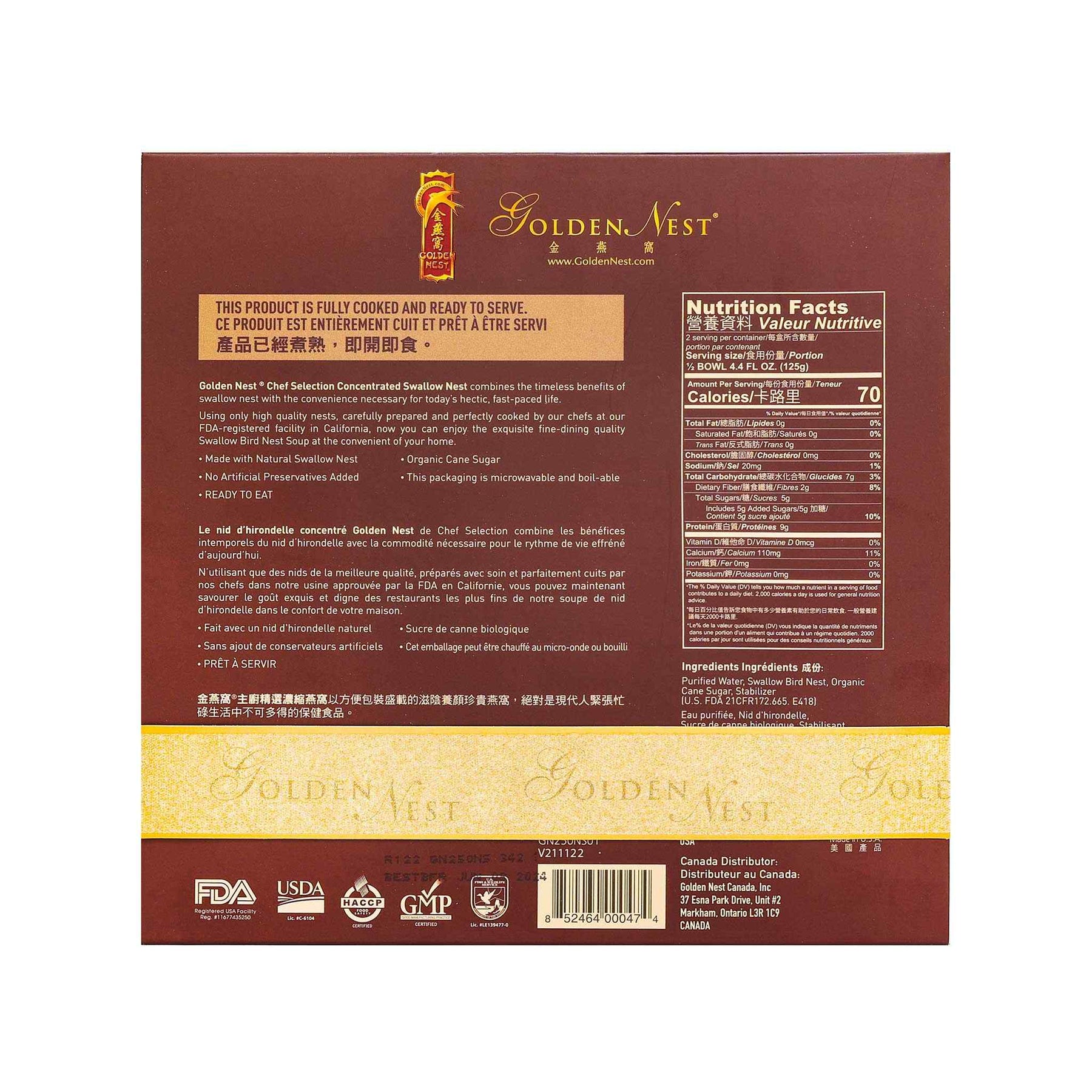 自1995年以來,金燕窩 已贏得美國第一大燕窩產品銷售品牌的聲譽。我們對品質的承諾使我們的燕窩產品成為健康和保健的首選,尤其是在假期期間。我們的即時燕窩 湯提供了一種享受營養美食的便捷方式。和金燕窩 在美國各大超市和亞洲專賣店都有販售,您可以放心地贈送貼心又營養的小節日禮物。