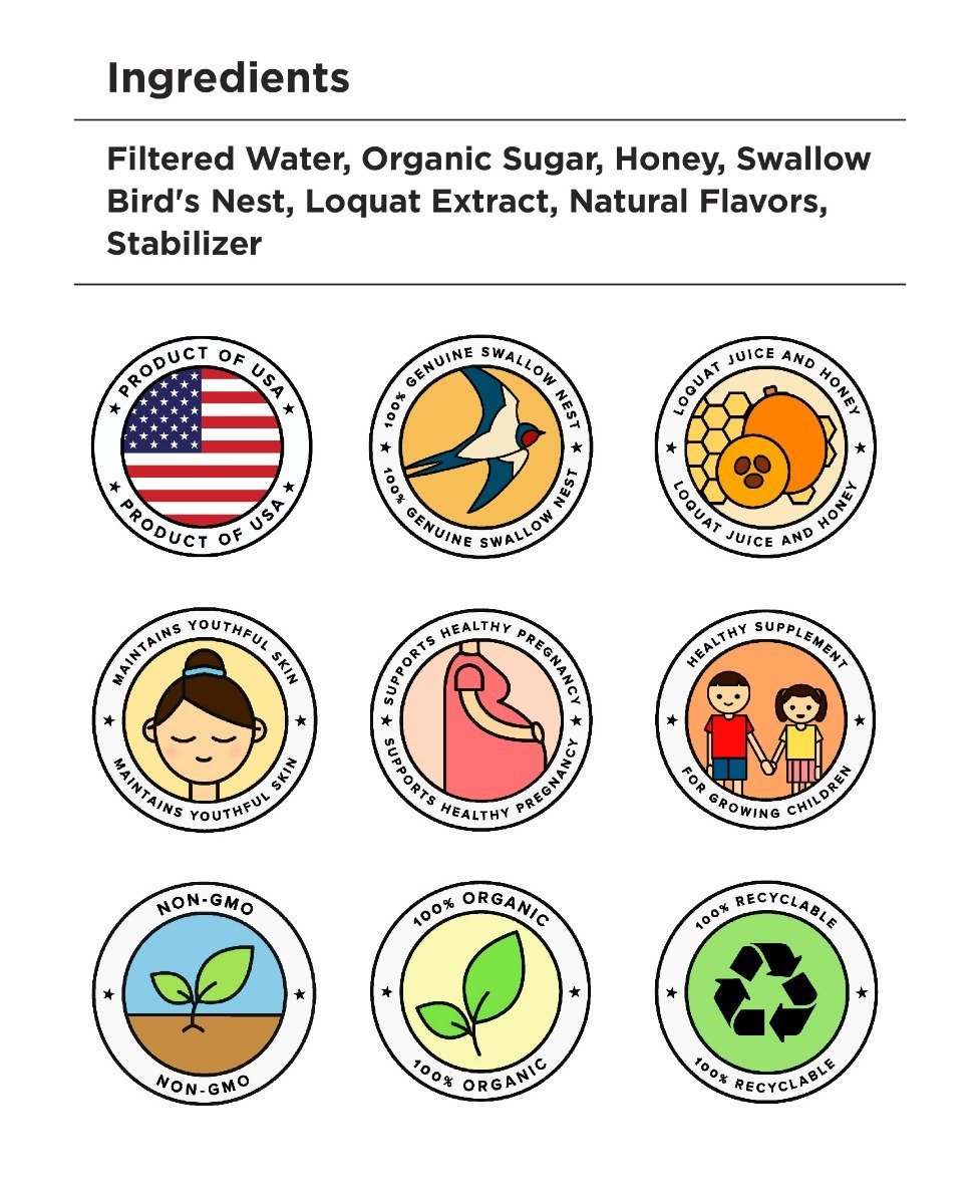 閃購 有機冰糖燕窩飲料 - 枇杷 和蜂蜜 - 12 瓶 x 240ml (8盎司)